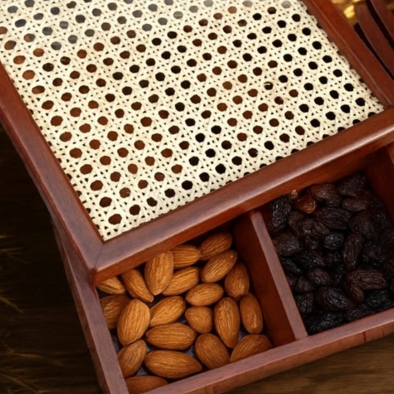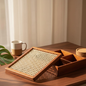- Wooden Serving Box with Rattan